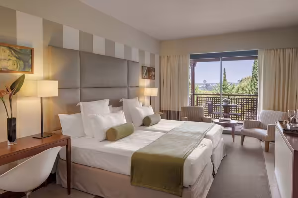 The 5-star hotel features 184 elegant rooms, 10 junior suites, and 2 spacious suites, all designed for maximum comfort. Guests can savour seasonal Andalusian cuisine in the resort’s restaurants and rejuvenate in the spa and gym—making it the perfect blend of golf, gastronomy, and relaxation.